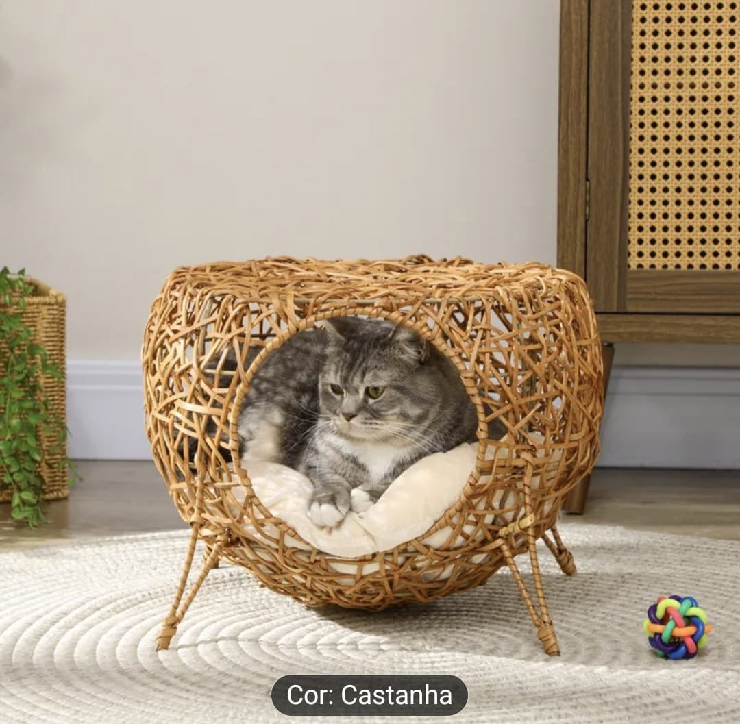 A cama elevada para gato combina funcionalidade com estética, integrando-se facilmente à decoração.